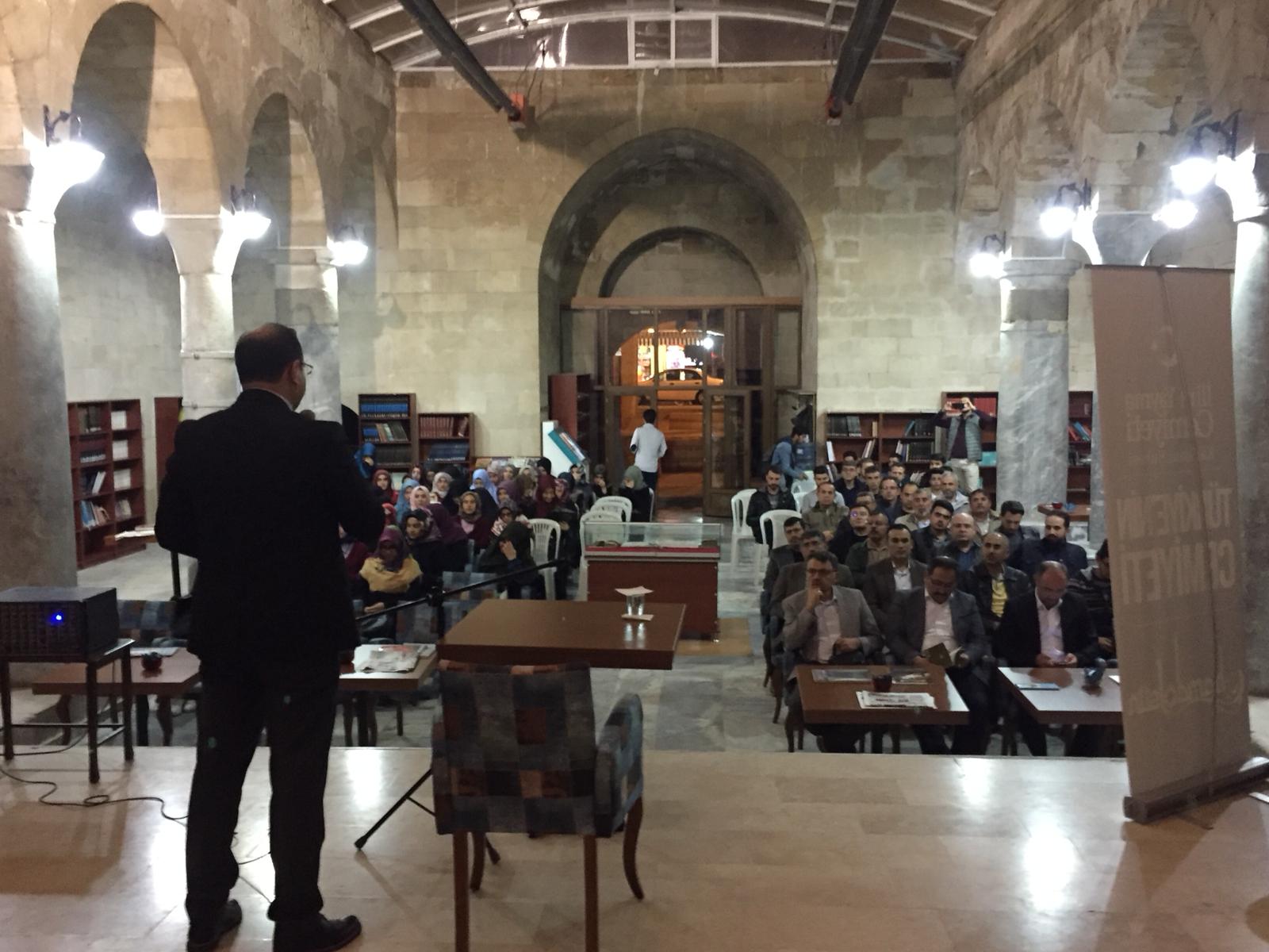 İlim yayma cemiyeti karaman şubesinin 2017’de başlatmış olduğu medrese söyleşileri bu yıl da Hatuniye Medresesinde (Millet Kıraatanesi) halkın ve üniversite öğrencilerinin yoğun katılımıyla devam ediyor. Kuran-ı kerim tilaveti ile başlayan program, İlim yayma cemiyeti karaman Şube başkanı Nurullah koçak beyin açılış konuşması ile devam etti. Koçak konuşmasında ilim yayma cemiyetinin yapmış olduğu sosyal ve kültürel etkinliklerden, öğrencilerle ilgili faaliyetlerden bahsetti. Dört farklı konuşmacı tarafından her hafta farklı bir konunun işleneceğini belirten koçak, Karaman halkını bu tür faaliyetlere katılmaya davet etti. Bu yıl yapılan programların ilkine konuşmacı olarak katılan karamanoğlu Mehmet bey Üniversitesi İslami ilimler fakültesi doktor öğretim üyesi Murat Gök, peygamber efendimizin hayatını anlatan Siyer üzerine bir konuşma gerçekleştirdi. Peygamberimizin doğumundan kendisine peygamberlik görevi verilinceye kadar geçen dönemi değerlendiren Murat gök, Siyer ilminin ortaya çıkışı ve önemi hakkında bir takım bilgiler verdikten sonra Allah Resul’ünün dünyaya teşrifi sırasında arap yarımadasında ve bölgede ki ahvali anlatarak konuşmasına devam etti. Hazreti Peygamber’in mücadelesini daha iyi anlayabilmek için İslam öncesi Arapların yaşayışlarının ve dönemin şartlarının iyi anlaşılması gerektiğine vurgu yapan konuşmacı o dönem insanının yaşam biçimi, dini yaşayışları, örf ve adetleri hakkında bilgiler verdi. Efendimizin doğumundan peygamberlik verilinceye kadar geçen 40 yıllık hayatının Siyer kaynaklarında anlatılan bölümlerine değinen konuşmacı Mekke’de ilk vahyin inişine kadar ki süreci değerlendirdi.
